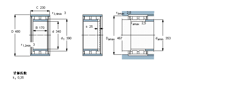 | 圓柱滾子軸承, 雙列滿裝滾子, 無密封件, 沒有載荷支承能力 | ||||||||||