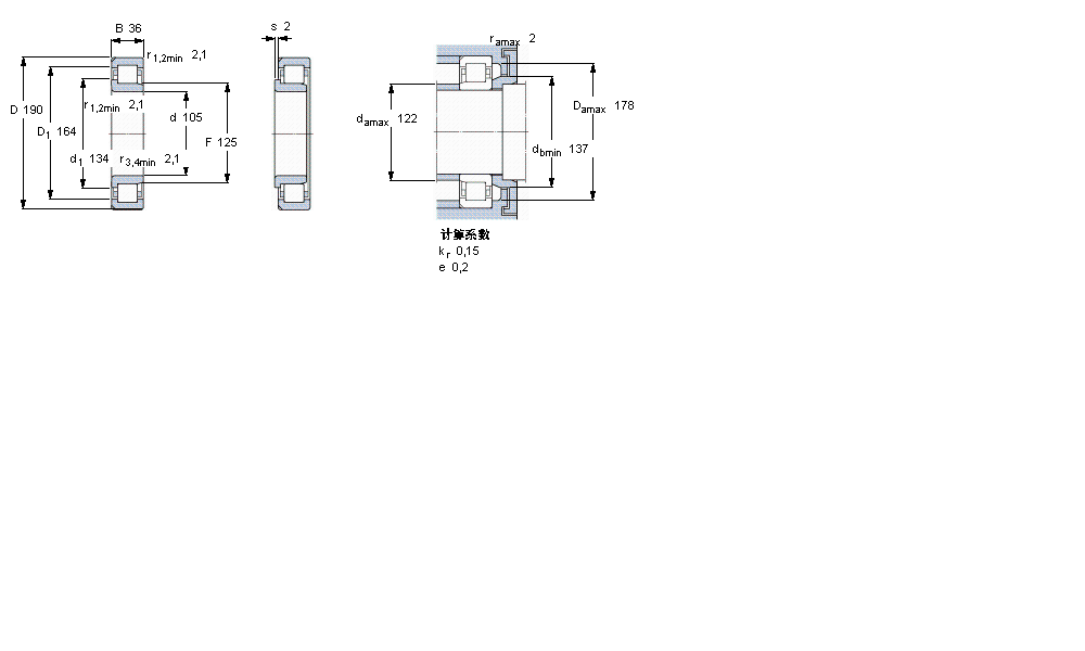 系列:圓柱滾子軸承, 單列, NJ 設(shè)計(jì), 于外圈的兩個(gè)帶定位槽