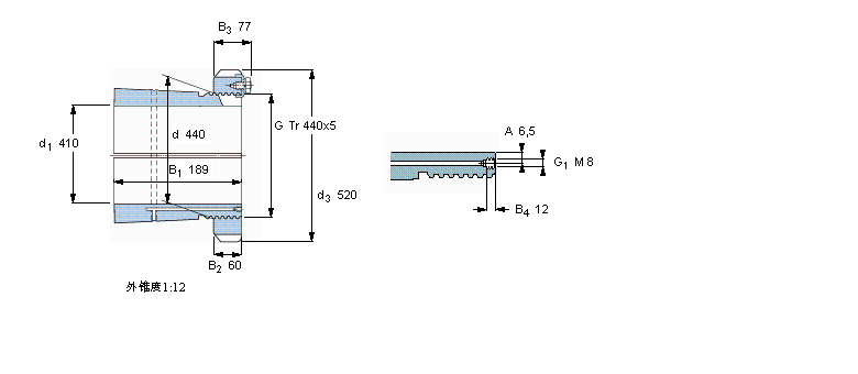 | d1 | d | d3 | B1 | G | 和鎖緊裝置 | 螺母 | ||||