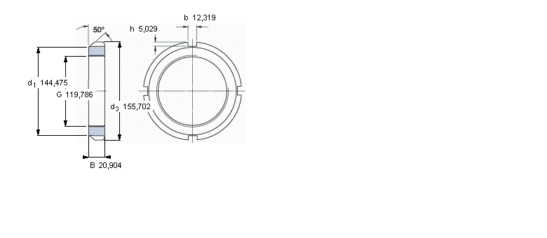 | N和AN鎖定螺母, 英制尺寸 | |||||||||